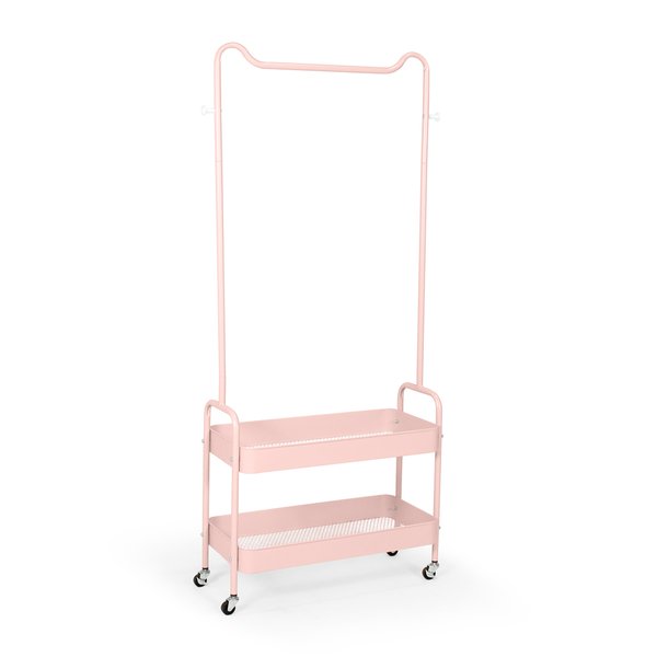 Arara de Roupas Multiuso com 2 Prateleiras e Rodízios em Ferro