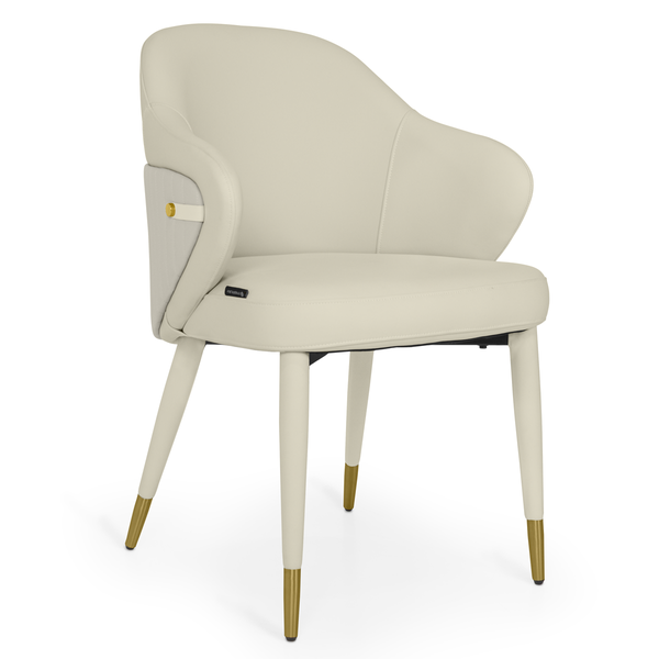 A Cadeira Milano é revestida em PU de toque macio e fácil limpeza, combinado ao painel externo com um botão dourado que confere charme artesanal. A estrutura do assento e do encosto é em madeira, garantindo robustez e durabilidade. Os pés são de metal com pintura preta e ponteiras metálicas douradas (somente na cor bege), oferecendo resistência e elegância. Seu assento conta com espuma de boa densidade que mantém o conforto ao longo do uso.