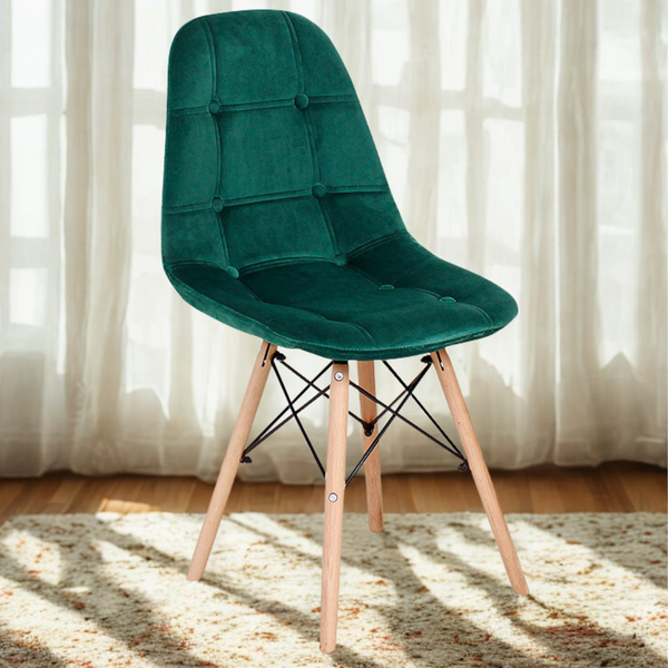 Cadeira de Jantar Eiffel Botonê Estofada em Veludo com Base de Madeira