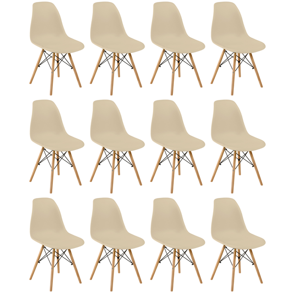 Conjunto 12 Cadeiras Charles Eames Eiffel Wood – Design Sofisticado e Conforto Atemporal
