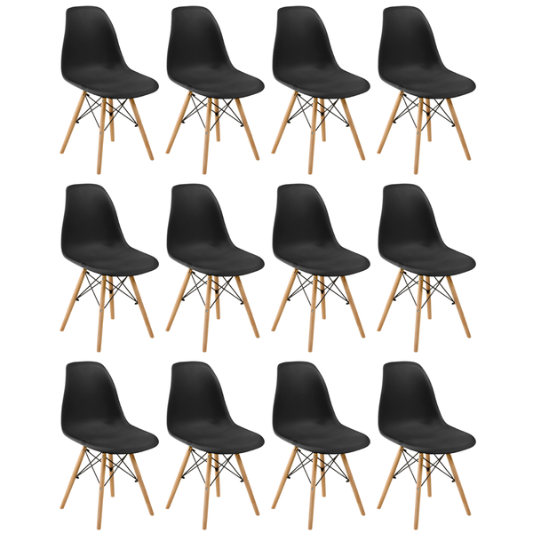 Conjunto 12 Cadeiras Charles Eames Eiffel Wood – Design Sofisticado e Conforto Atemporal