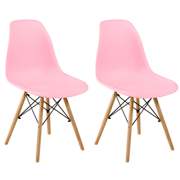 Conjunto 2 Cadeiras Charles Eames Eiffel Wood Base Madeira Rosa
