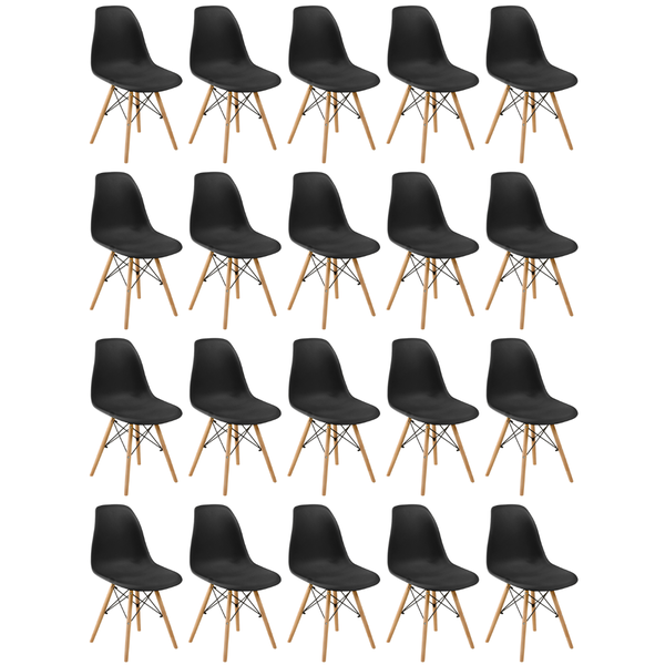 Conjunto 20 Cadeiras Charles Eames Eiffel Wood Base Madeira Preta