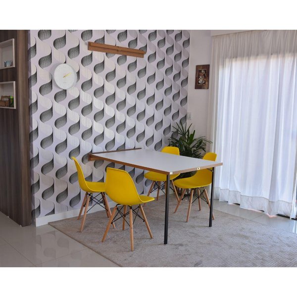 Mesa Dobrável Retrátil de Parede 140cm Branco/Noronha com 4 Cadeiras Eames Eiffel