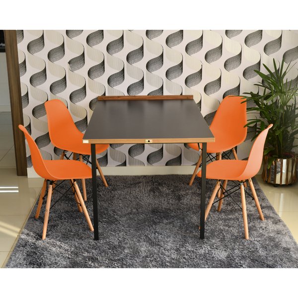 Conjunto de Mesa Dobrável Retrátil 1,40 Preto/Noronha + 4 Cadeiras Eiffel Laranja