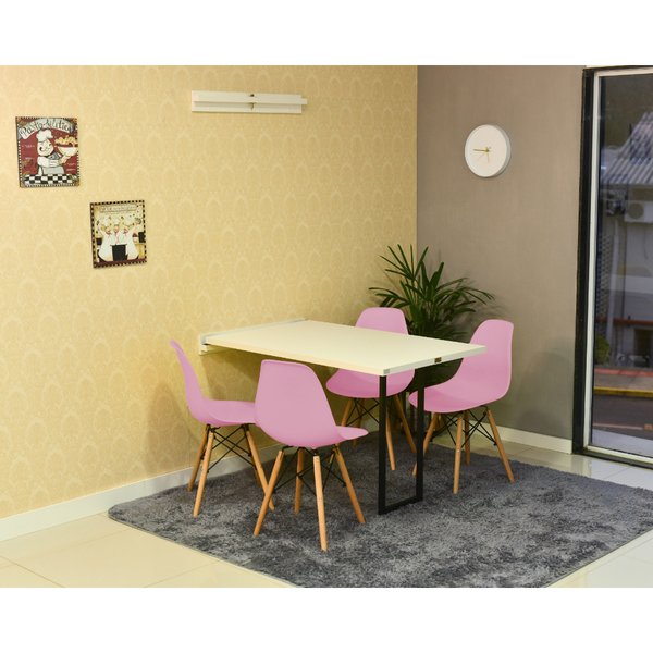 Conjunto de Mesa Dobrável Retrátil 120 x 75 Branca + 4 Cadeiras Eiffel Rosa
