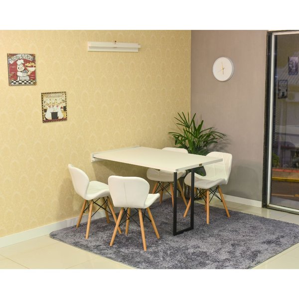 Conjunto Mesa Dobrável Retrátil de Parede 120 x 75 Branca com 4 Cadeiras Eiffel Slim