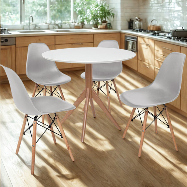 Conjunto Mesa de Jantar Maitê 80cm Branca com 4 Cadeiras Charles Eames Cinza