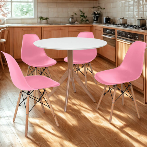 Conjunto Mesa de Jantar Maitê 80cm Branca com 4 Cadeiras Charles Eames Rosa