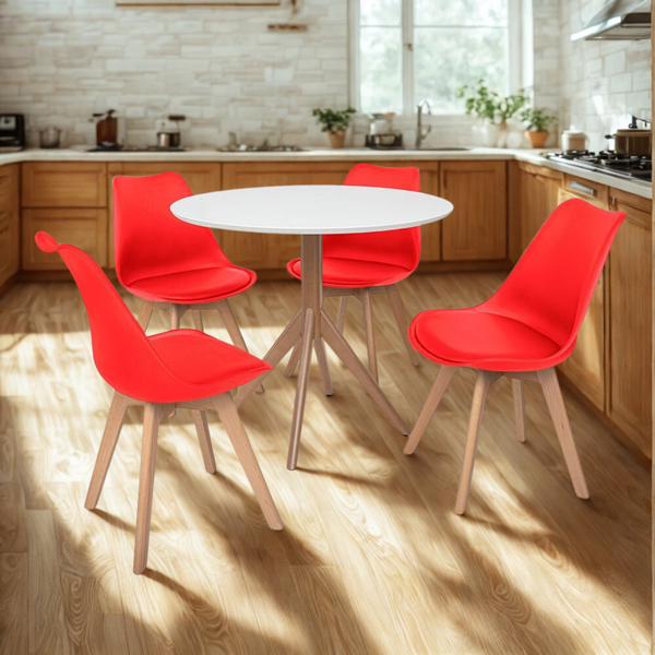 Conjunto Mesa de Jantar Maitê 80cm Branca com 4 Cadeiras Eames Wood Leda Vermelha