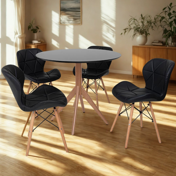 Conjunto Mesa de Jantar Maitê 80cm Preta com 4 Cadeiras Eames Eiffel Slim