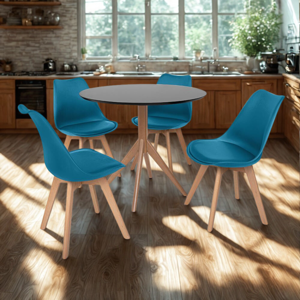 Conjunto Mesa de Jantar Maitê 80cm com 4 Cadeiras Eames Wood Leda