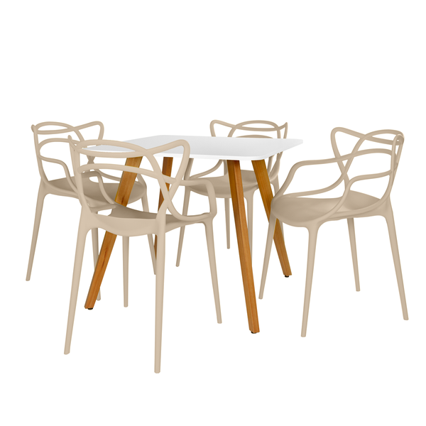 Conjunto Mesa de Jantar Quadrada Ágata 90x90cm Branca com 4 Cadeiras Allegra Nude