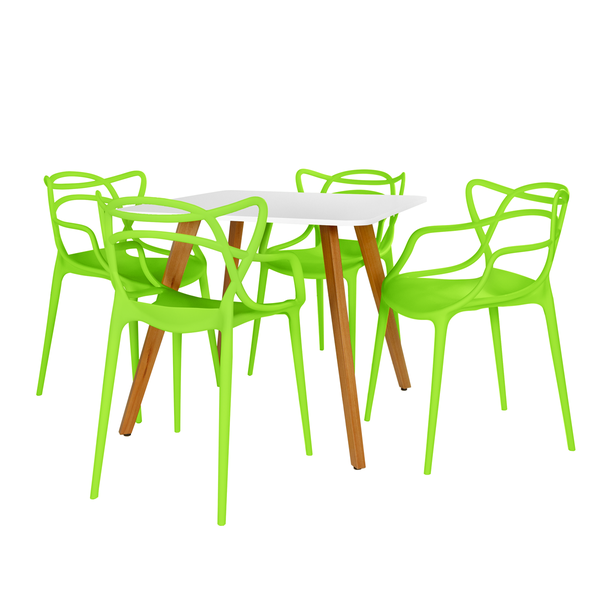 Conjunto Mesa de Jantar Quadrada Ágata 90x90cm Branca com 4 Cadeiras Allegra Verde