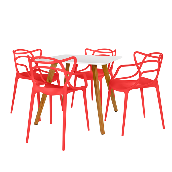 Conjunto Mesa de Jantar Quadrada Ágata 90x90cm Branca com 4 Cadeiras Allegra Vermelho