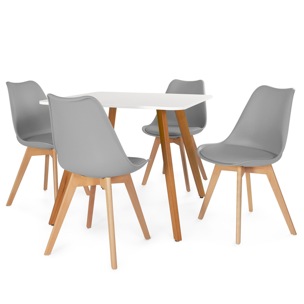Conjunto Mesa de Jantar Quadrada Ágata 90x90cm Branca com 4 Cadeiras Leda Cinza