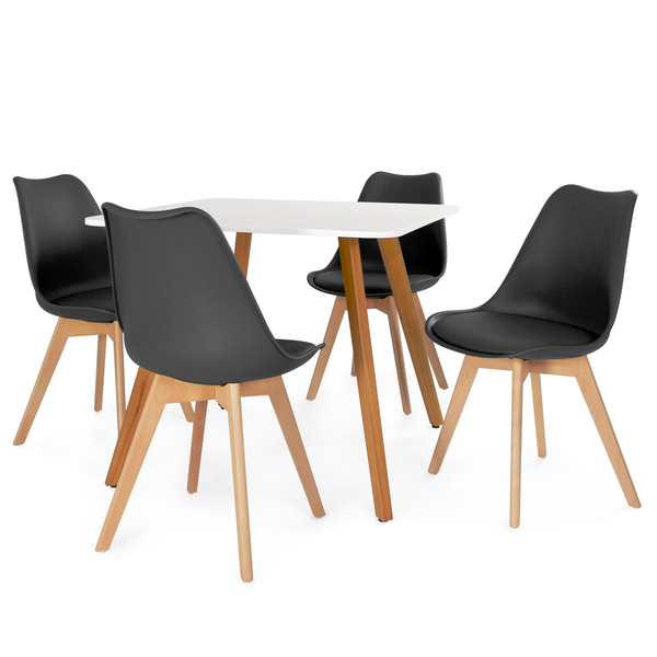 Conjunto Mesa de Jantar Quadrada Ágata 90x90cm Branca com 4 Cadeiras Leda Preto