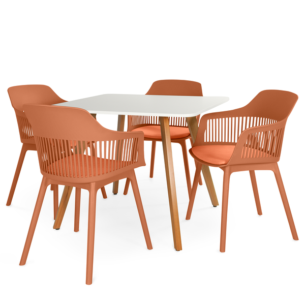 Conjunto Mesa de Jantar Quadrada Ágata 90x90 com 4 Cadeiras Marcela