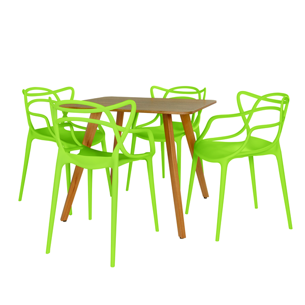 Conjunto Mesa de Jantar Quadrada Ágata 90x90cm Natural com 4 Cadeiras Allegra