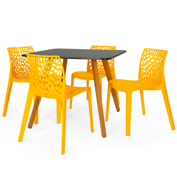 Conjunto Mesa de Jantar Quadrada Ágata 90x90cm com Cadeiras Gruvyer