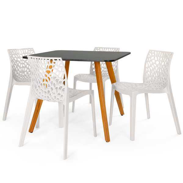 Conjunto Mesa de Jantar Quadrada Ágata 90x90cm com Cadeiras Gruvyer