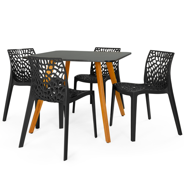Conjunto Mesa de Jantar Quadrada Ágata 90x90cm com Cadeiras Gruvyer