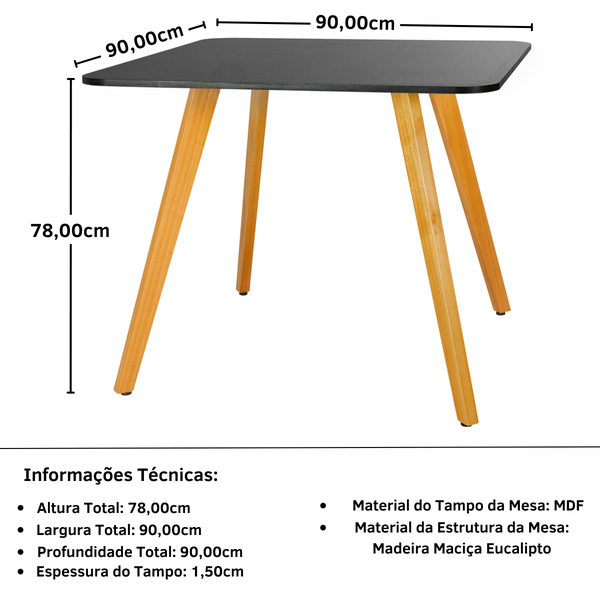 A Mesa de Jantar Quadrada Ágata conta com linhas retas e acabamento sofisticado que se adaptam a diversos estilos de decoração. Seu tamanho de 90x90cm se torna perfeito para espaços menores, sem comprometer a funcionalidade. Seu tampo é feito em MDF e a sua estrutura em Madeira Maciça, materiais que garantem uma longa vida útil ao produto.