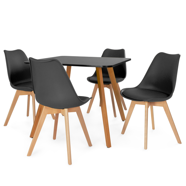 Conjunto Mesa de Jantar Quadrada Ágata 90x90cm Preta com 4 Cadeiras Leda Preto