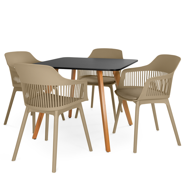 Conjunto Mesa de Jantar Quadrada Ágata 90x90cm Preta com 4 Cadeiras Marcela Nude Escuro