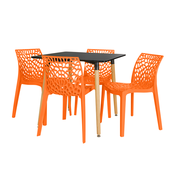 Conjunto Mesa de Jantar Quadrada Eiffel 80x80cm Preta com 4 Cadeiras Gruvyer Laranja