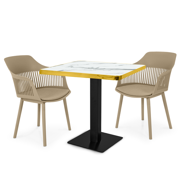 Conjunto Mesa de Jantar Quadrada Venezia 70x70cm Branca com 2 Cadeiras Estofadas Marcela Nude Escuro