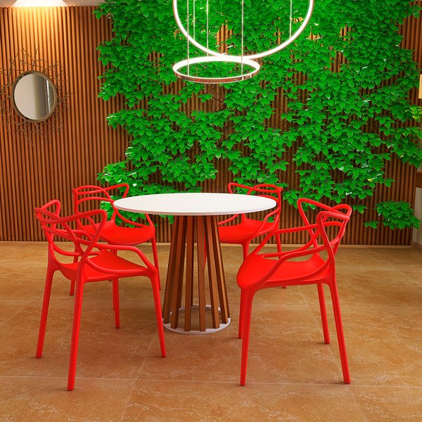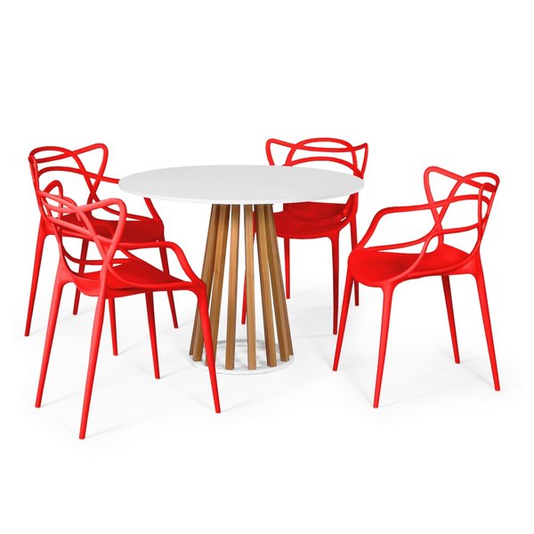 Conjunto Mesa de Jantar Redonda Branca 100cm Talia Amadeirada com 4 Cadeiras Allegra Vermelho