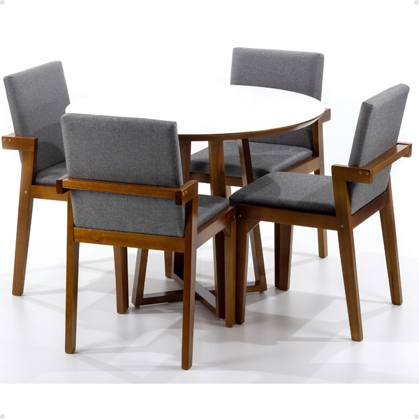 Conjunto Mesa de Jantar Redonda Branca Lara Premium 100cm com 4 Cadeiras Estofadas Isabela