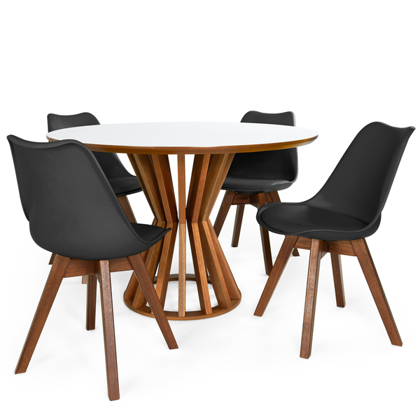 Conjunto Mesa de Jantar Redonda Cecília 120cm Branca com 4 Cadeiras Leda Vértice Preto
