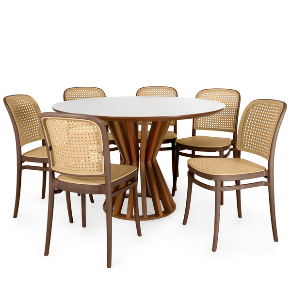 Conjunto de Mesa de Jantar Cecília Redonda 120cm com 6 Cadeiras Roma