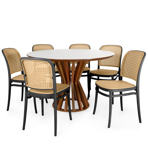 Conjunto de Mesa de Jantar Cecília Redonda 120cm com 6 Cadeiras Roma