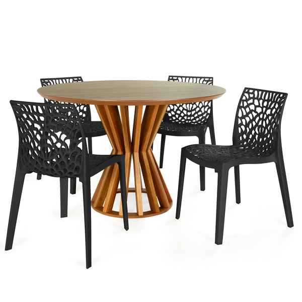 Conjunto Mesa de Jantar Redonda Cecília 120cm com 4 Cadeiras Gruvyer