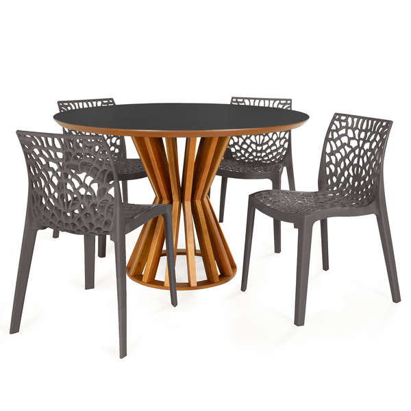 Conjunto Mesa de Jantar Redonda Cecília 120cm Preta com 4 Cadeiras Gruvyer Cinza Escuro