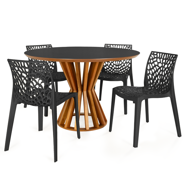 Conjunto Mesa de Jantar Redonda Cecília 120cm Preta com 4 Cadeiras Gruvyer Preto