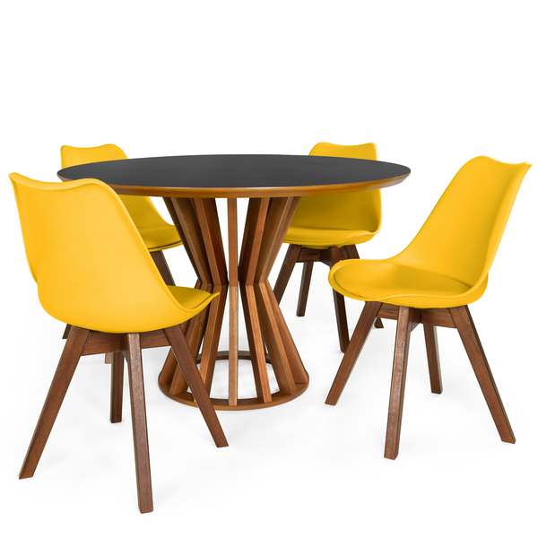 Conjunto Mesa de Jantar Redonda Cecília 120cm Preta com 4 Cadeiras Leda Vértice Amarelo