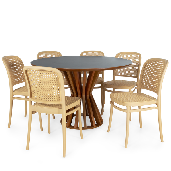 Conjunto de Mesa de Jantar Cecília Redonda 120cm com 6 Cadeiras Roma