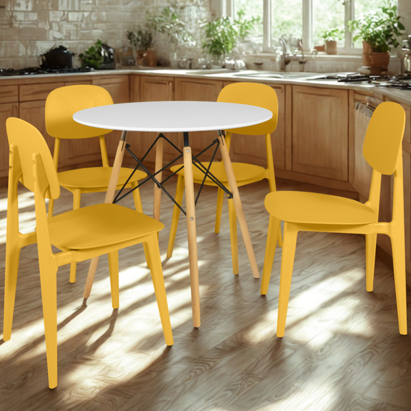 O Conjunto de Mesa de Jantar Redonda Eiffel com 4 Cadeiras Itália é a escolha ideal para quem deseja aliar elegância, praticidade e conforto em um só ambiente. Com um design moderno e clean, esse conjunto se adapta perfeitamente a diferentes estilos de decoração, sendo ideal tanto para salas de jantar quanto cozinhas compactas.