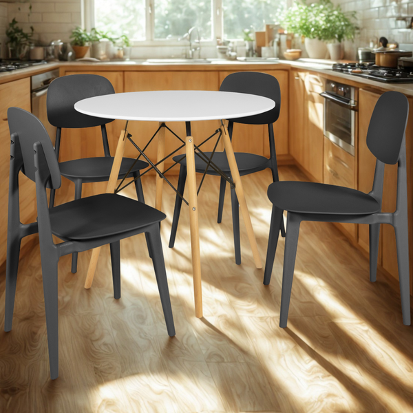 O Conjunto de Mesa de Jantar Redonda Eiffel com 4 Cadeiras Itália é a escolha ideal para quem deseja aliar elegância, praticidade e conforto em um só ambiente. Com um design moderno e clean, esse conjunto se adapta perfeitamente a diferentes estilos de decoração, sendo ideal tanto para salas de jantar quanto cozinhas compactas.