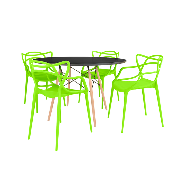 Conjunto Mesa de Jantar Redonda Eiffel Preta 120cm com 4 Cadeiras Allegra Verde