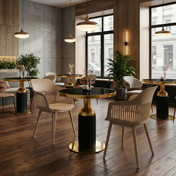 A Mesa Imperial possui tampo redondo de 70cm, perfeito para garantir equilíbrio visual e praticidade no dia a dia. Seu tampo em Mármore Sintético oferece um visual sofisticado, resistência e fácil manutenção. As bordas em metal proporcionam um toque contemporâneo, enquanto a base metálica garante estabilidade e longa vida útil, combinando com diversos estilos de decoração.