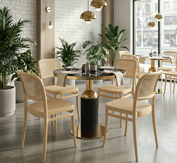As Cadeiras Roma completam o conjunto com um design moderno e ergonômico. Suas linhas suaves e estrutura leve proporcionam conforto e um toque acolhedor ao ambiente, sendo perfeitas para salas de jantar, cozinhas e áreas gourmet.