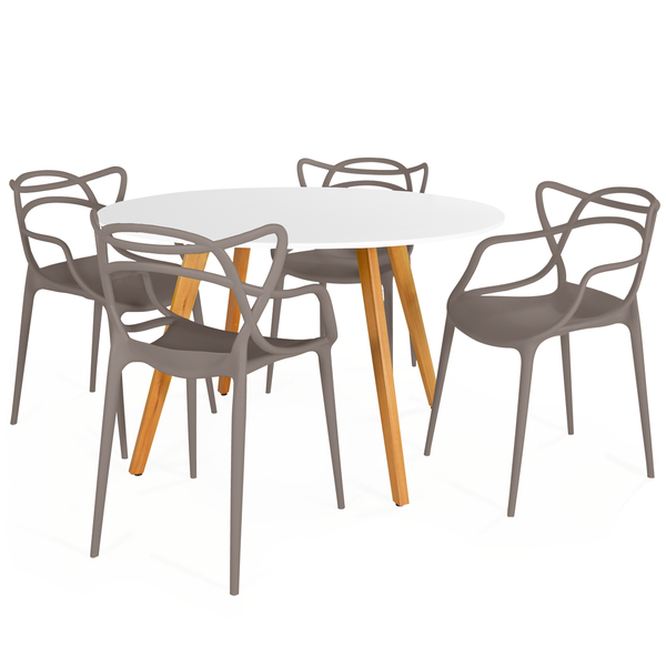 Transforme a sua sala de jantar em um ambiente moderno e aconchegante com o Conjunto Mesa de Jantar Redonda Laura 100cm com 4 Cadeiras Allegra.