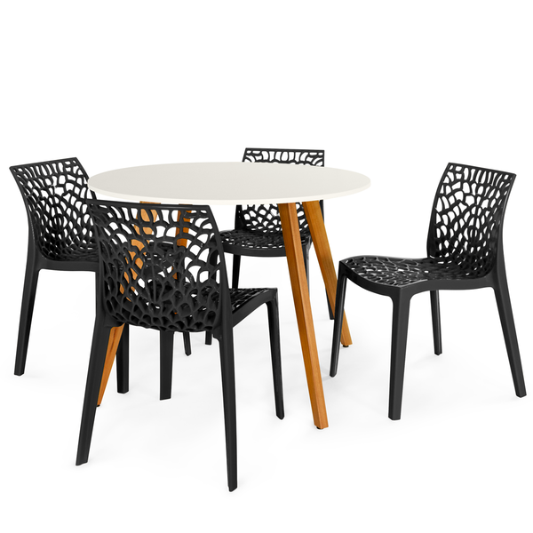 Conjunto Mesa de Jantar Redonda Laura 100cm com 4 Cadeiras Gruvyer
