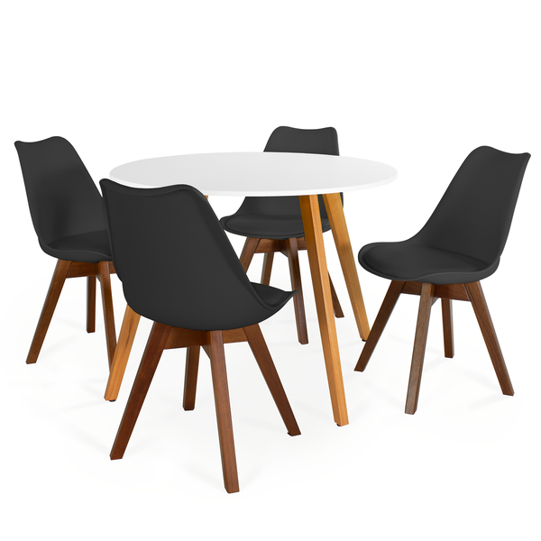 Conjunto Mesa de Jantar Redonda Laura 100cm Branca com 4 Cadeiras Leda Vértice Preto