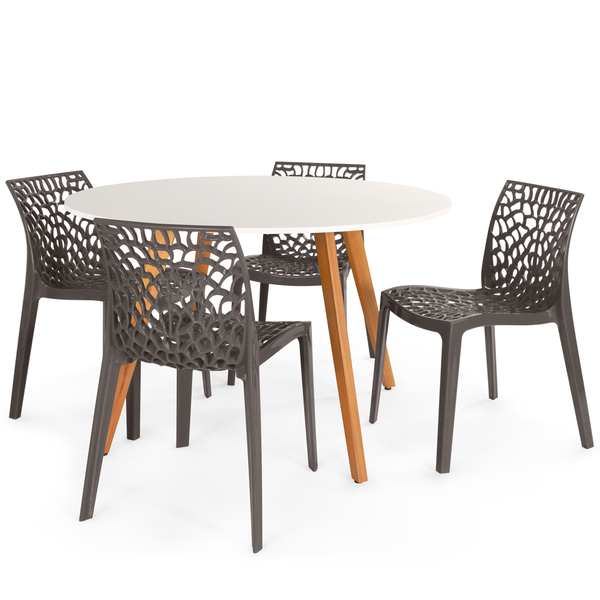 Conjunto Mesa de Jantar Redonda Laura 120cm com 4 Cadeiras Gruvyer